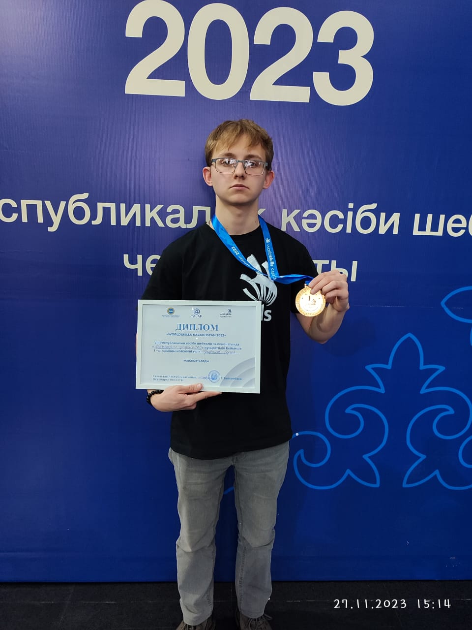 Золото в компетенции Инженерная графика CAD получил участник из города Костанай Трефилов Сергей, который будучи школьником выиграл Региональный этап и представлял Костанайскую область в Финале соревнований.